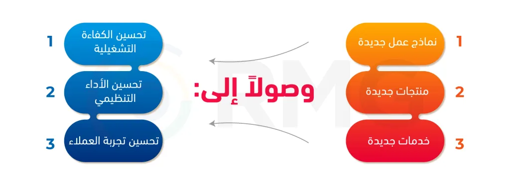 تحويل نماذج الأعمال وتطويرها بشكل استراتيجي، لتكون نماذج رقمية مستندة على بيانات وتقنيات وشبكات الاتصالات.