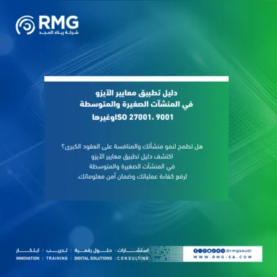 هل تطمح لنمو منشأتك والمنافسة على العقود الكبرى؟ اكتشف دليل تطبيق معايير الآيزو في المنشآت الصغيرة والمتوسطة لرفع كفاءة عملياتك وضمان أمن معلوماتك. تعرف على كيف تفتح لك شهادات ISO 27001 و9001 أبواب الفرص في السوق السعودي مع شركة ريناد المجد(RMG).