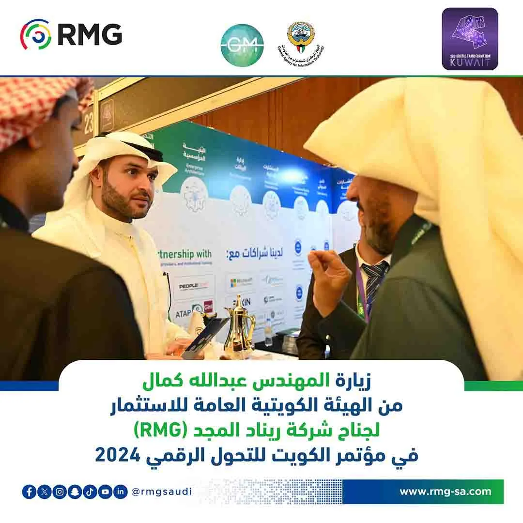 استقبل جناح شركة ريناد المجد (RMG) لتقنية المعلومات، في اليوم الأول من مؤتمر الكويت للتحول الرقمي 2024، المهندس عبدالله كمال من الهيئة الكويتية العامة للاستثمار (KIA).