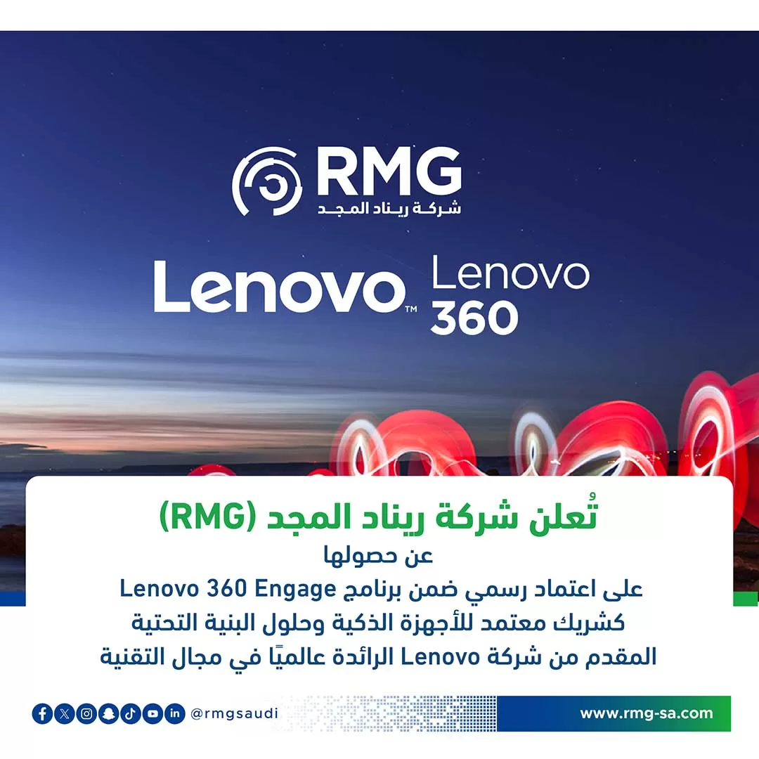في خطوة استراتيجية تعكس التزامها بتقديم حلول تقنية متقدمة وموثوقة، أعلنت شركة ريناد المجد (RMG) عن حصولها على اعتماد رسمي كشريك معتمد من Lenovo ضمن برنامج Lenovo 360 Engage، وذلك في مجالي الأجهزة الذكية وحلول البنية التحتية.