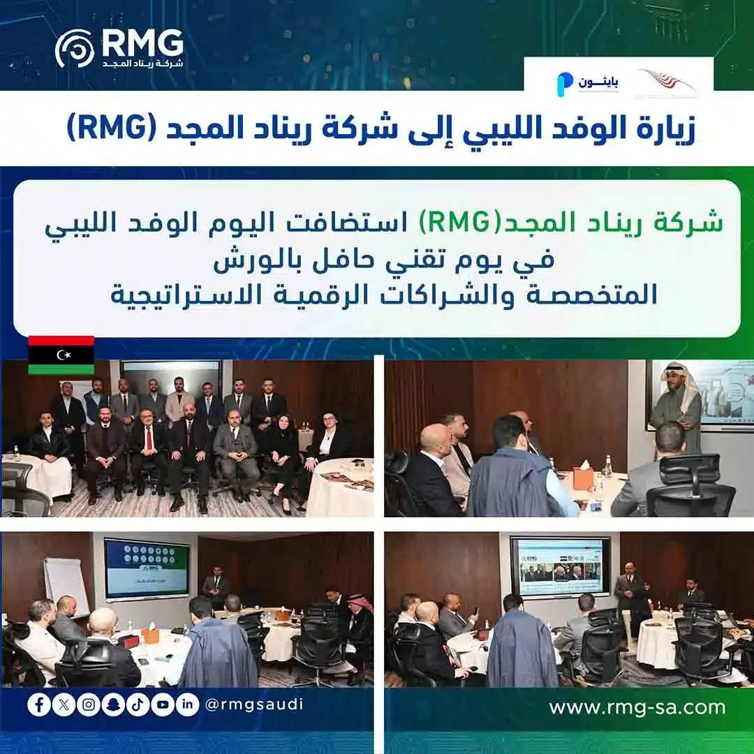 في إطار تعزيز التعاون التقني الإقليمي ودعم مسارات التحول الرقمي العربي، استضافت شركة ريناد المجد (RMG) وفدًا ليبيًا رفيع المستوى، ممثلًا في الشركة الليبية للبريد والاتصالات وتقنية المعلومات القابضة وشركة بايثون، وذلك ضمن يوم مهني متكامل عكس عمق العلاقات المؤسسية، وأكد مكانة ريناد المجد كشريك استراتيجي موثوق في مجالات التحول الرقمي، الذكاء الاصطناعي، والأمن السيبراني.
