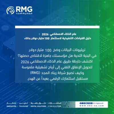 تريليونات البيانات وضخ 100 مليار دولار في البنية التحية.. هل مؤسستك جاهزة لاقتناص حصتها؟ اكتشف خارطة طريق عام الذكاء الاصطناعي 2026 لتحويل الإنفاق التقني إلى أرباح تشغيلية ملموسة، وكيف تصيغ شركة ريناد المجد (RMG) مستقبل استثمارك الرقمي بعيداً عن الهدر.