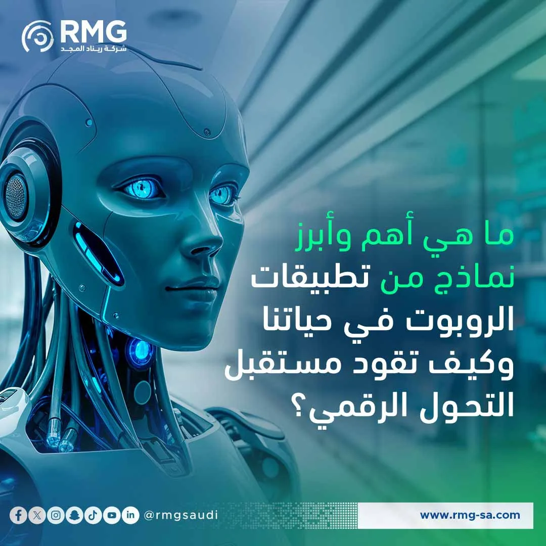هل تتساءل عن أهم نماذج من تطبيقات الروبوت في حياتنا اليومية والمهنية؟ اكتشف كيف تُحدث الروبوتات ثورة في القطاعين الحكومي والخاص، ودور شركة ريناد المجد (RMG) في تمكين هذا التحول الرقمي بأعلى معايير الجودة.