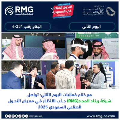 في ختام فعاليات اليوم الثاني، تدعو شركة ريناد المجد (RMG) جميع الجهات الصناعية والهيئات والمنشآت الباحثة عن تطوير عملياتها وتسريع مسار التحول الصناعي إلى الاستفادة من خبراتها الواسعة وحلولها المتكاملة.