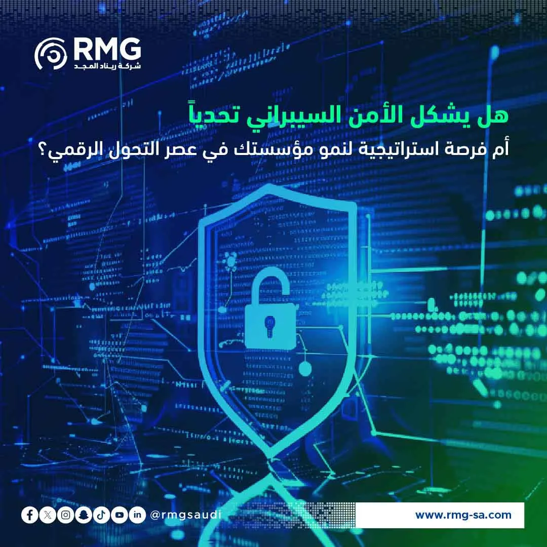 نحن في RMG نؤمن بأن شراكتنا معكم ليست مجرد تقديم خدمات، بل هي استثمار طويل الأمد في صمودكم الرقمي. من خلال تبني نهجنا الاستباقي والمُصمم خصيصاً ليتوافق مع مستهدفات “رؤية 2030” وضوابط NCA الصارمة، يمكننا معاً تحويل التحديات السيبرانية إلى محركات لتمكين الابتكار والنمو الآمن، وضمان استمرارية تقديم الخدمات الحيوية للمجتمع. تواصلوا معنا اليوم لتقييم جاهزيتكم السيبرانية وتصميم استراتيجية دفاعية تليق بأهمية أصولكم الرقمية.