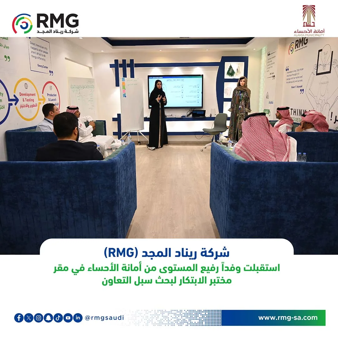 استقبلت شركة ريناد المجد (RMG) وفداً رفيع المستوى من أمانة الأحساء في مقر مختبر الابتكار التابع للشركة، وذلك في إطار تعزيز العلاقات الاستراتيجية وبحث آفاق التعاون المشترك في مجال المشاريع الابتكارية.