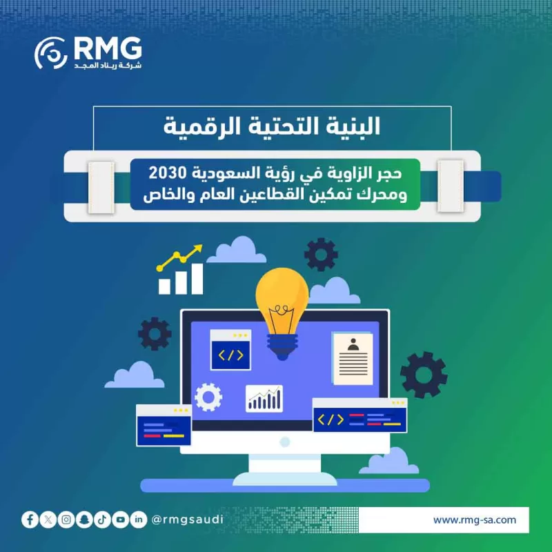 اكتشف كيف تشكل البنية التحتية الرقمية القوية عصب الاقتصاد السعودي الحديث. دليلك الشامل لفهم مكوناتها، أهميتها الاستراتيجية لتحقيق رؤية 2030، وكيف تقود “ريناد المجد” مسيرة التحول الرقمي لمؤسستك نحو مستقبل واعد.