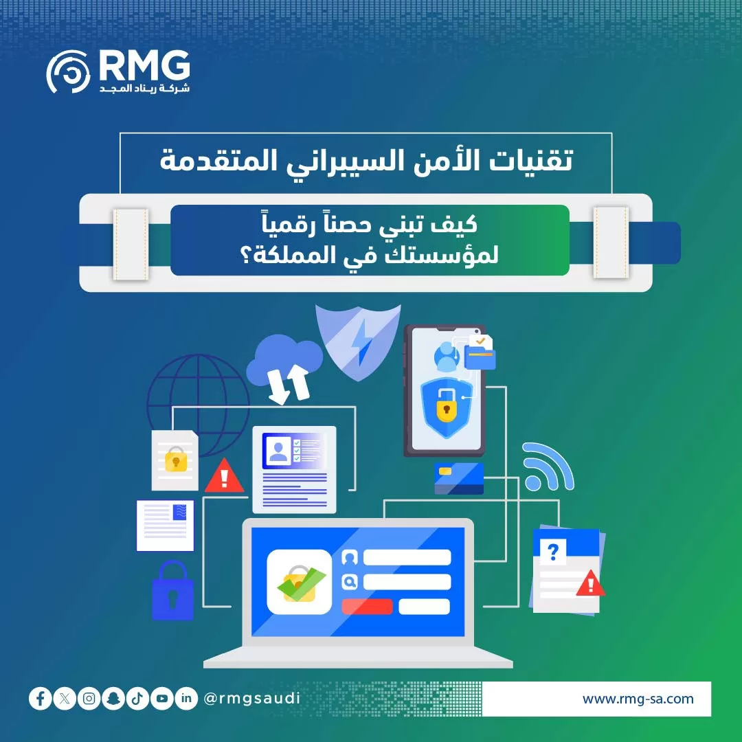 إن فهم هذه التقنيات هو الخطوة الأولى، ولكن تطبيقها ودمجها بفعالية في بيئة عمل معقدة يتطلب خبرة عميقة وشريكاً موثوقاً. هنا يأتي دور شركة ريناد المجد (RMG)، التي تضع خبرتها الواسعة وفريقها من الخبراء المعتمدين في خدمة المؤسسات والجهات الحكومية والخاصة في المملكة. نحن لا نقدم حلولاً جاهزة، بل نعمل كشريك استراتيجي لفهم تحدياتكم الفريدة، وتقييم بنيتكم التحتية الحالية، وتصميم وتنفيذ استراتيجية أمن سيبراني متكاملة تعتمد على أفضل وأحدث تقنيات الأمن السيبراني المذكورة. نضمن أن تكون حلولنا متوافقة تماماً مع الأطر التنظيمية المحلية ومعايير الهيئة الوطنية للأمن السيبراني، مما يمنحكم الثقة والطمأنينة للتركيز على نمو أعمالكم.