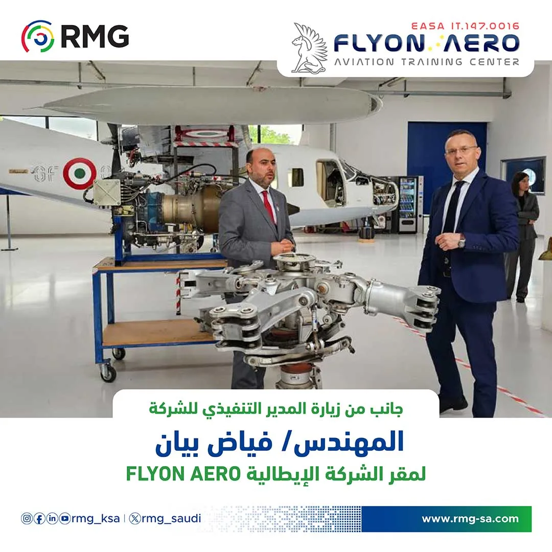 قام وفد رفيع المستوي من شركة ريناد المجد بقيادة الرئيس التنفيذي للشركة/ مهندس فياض بيان بزيارة مقر FLYON AERO Srl في إيطاليا . وتأتي هذه الزيارة في إطار التوسع في الشراكات الاستراتيجية لتحقيق التنمية وتعزيز القدرات في مجال الاستشارات والتدريب في قطاع الطيران.