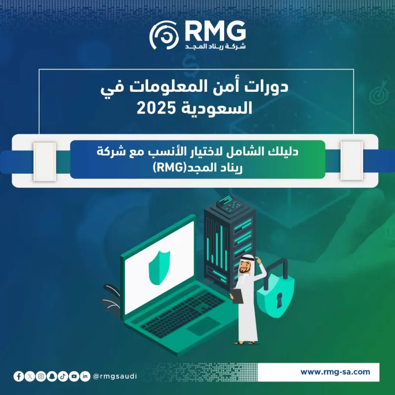 ارتقِ بمهاراتك عبر دورات أمن المعلومات الأكثر تطورًا في السعودية مع شركة ريناد المجد (RMG). اكتشف أنواع الدورات، فوائدها، وكيف تختار الدورة المثالية لدعم أهدافك الرقمية وتمكين مؤسستك وفق رؤية 2030.