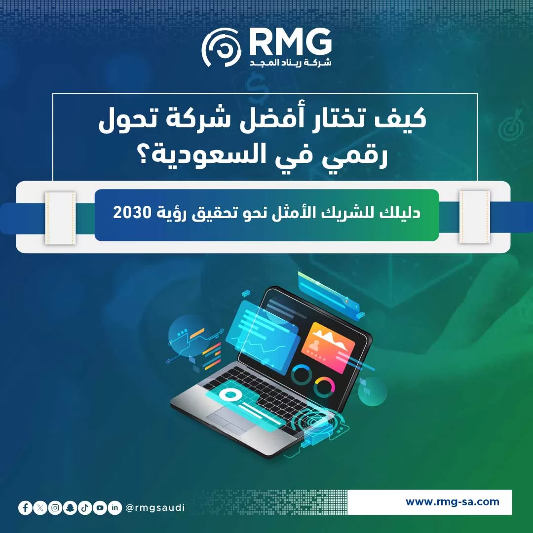 تبحث عن شركة تحول رقمي موثوقة في السعودية؟ دليلك الشامل لاختيار الشريك الأمثل لقيادة رحلتك الرقمية نحو الابتكار والنمو. اكتشف خدمات شركة ريناد المجد RMG، شركة تحول رقمي رائدة تدعم رؤية 2030.