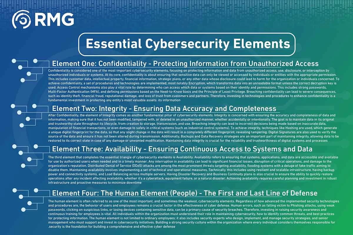 Discover the essential cybersecurity elements that form the pillars of modern digital protection. Learn about confidentiality, integrity, availability, the role of people, technology, and processes in building a robust cyber defense for your valuable assets and sensitive data.