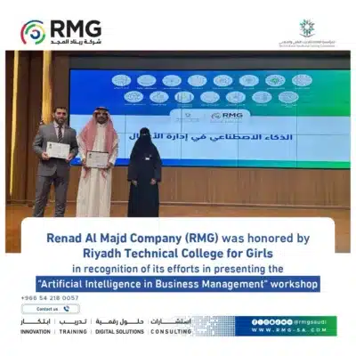 As part of its ongoing efforts to enhance digital transformation and build national capabilities, Renad Al-Majd (RMG) conducted a specialized in-person training workshop titled “Artificial Intelligence in Business Management.” Hosted at the Technical College for Girls, the workshop targeted ambitious female employees and students seeking to develop their skills and keep pace with the requirements of the modern labor market.