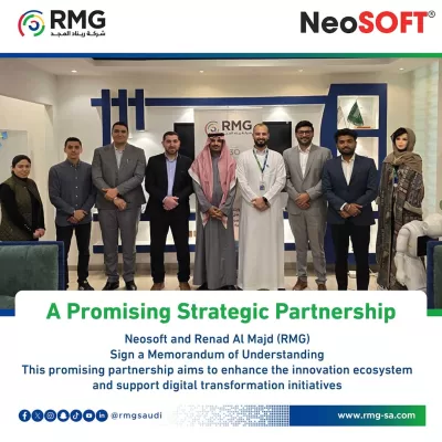 The MoU was signed by Mr. Rajendra Rathi, Vice President of Operations, on behalf of Neosoft, and Eng. Fayadh Hani Bayan, Chief Executive Officer, on behalf of Renad Al Majd (RMG). This agreement establishes a framework for joint action aimed at maximizing the benefit from the specialized expertise of both companies.