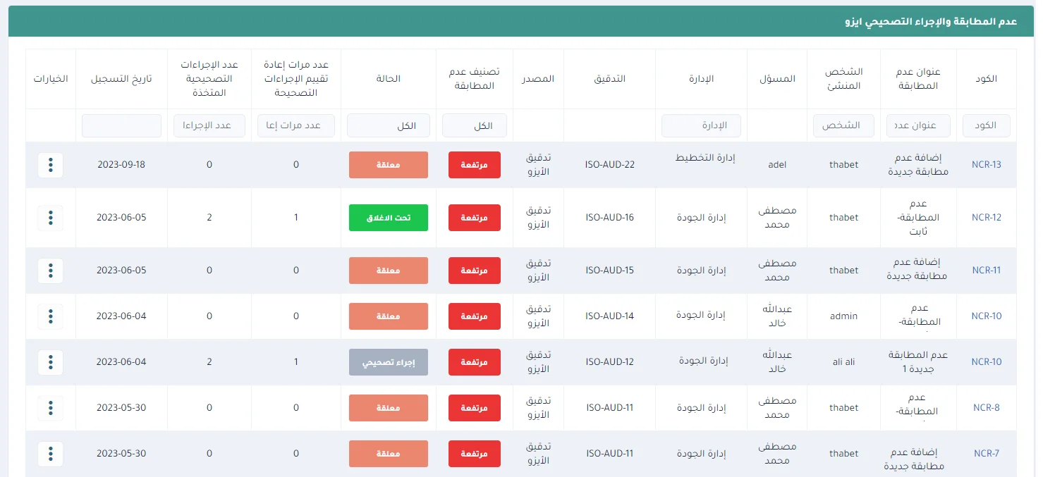 - Non-conformance Management