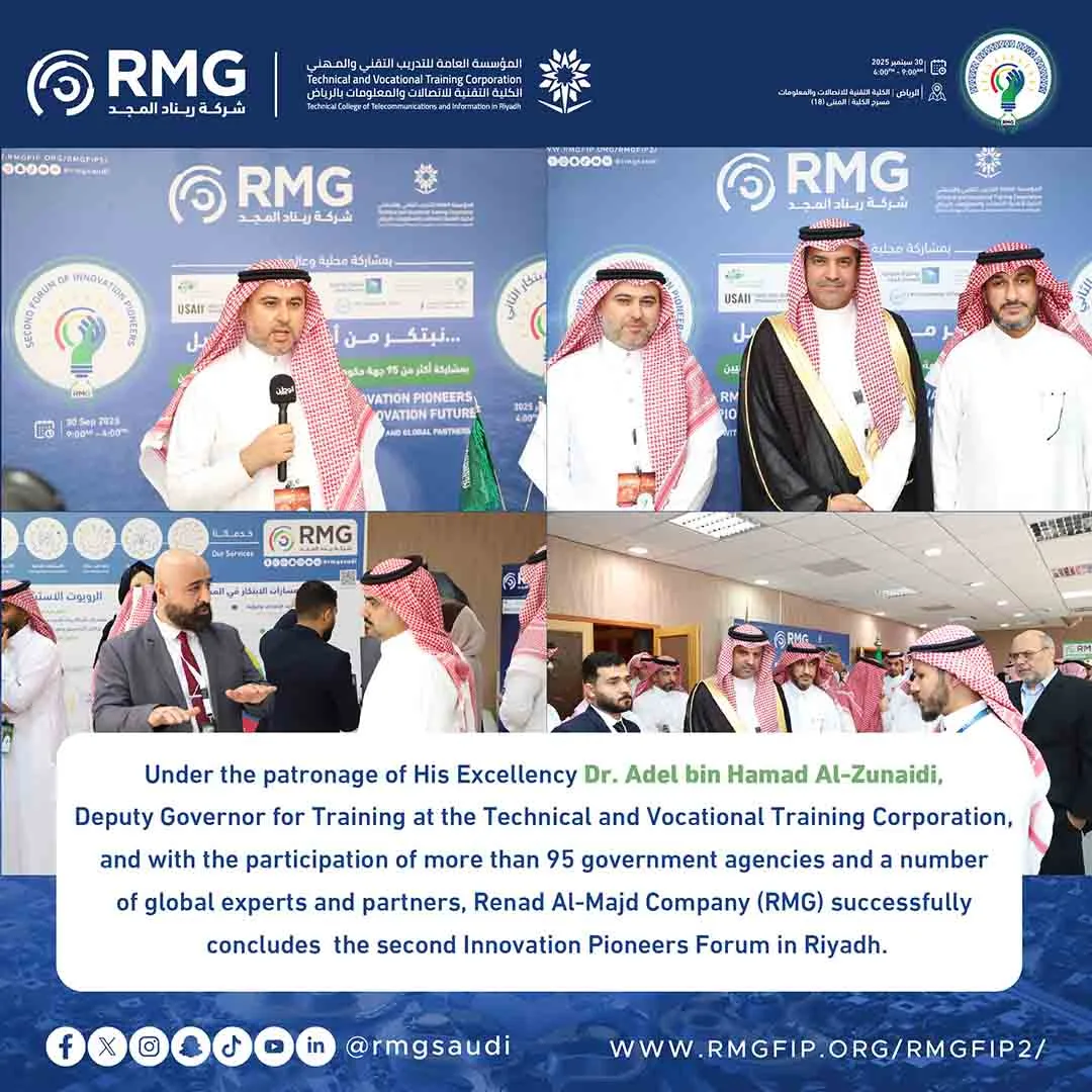 For the second year in a row, RMG is proving its leadership in organizing one of the most prominent innovation events in the Kingdom, through a forum that provided wide spaces for networking, exchanging experiences, and exploring the latest technology solutions that support the digital transformation and institutional innovation. This success reaffirms the company’s mission to enable innovation as the driving force for sustainable development, and a key to achieving the goals of the Kingdom’s Vision 2030.