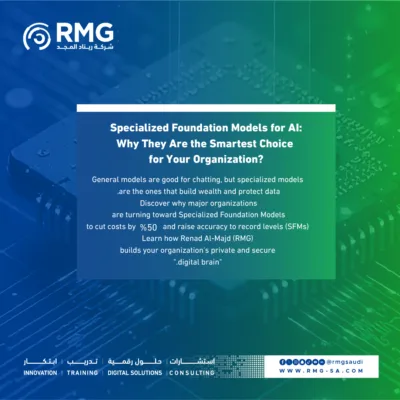General models are good for chatting, but specialized models are the ones that build wealth and protect data. Discover why major organizations are turning toward Specialized Foundation Models (SFMs) to cut costs by 50% and raise accuracy to record levels. Learn how Renad Al-Majd (RMG) builds your organization’s private and secure “digital brain.”