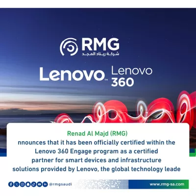 In a strategic move reflecting its commitment to delivering advanced and reliable technology solutions, Renad Al Majd Company (RMG) has announced its official accreditation as a certified partner of Lenovo under the Lenovo 360 Engage Program, in the fields of intelligent devices and infrastructure solutions.